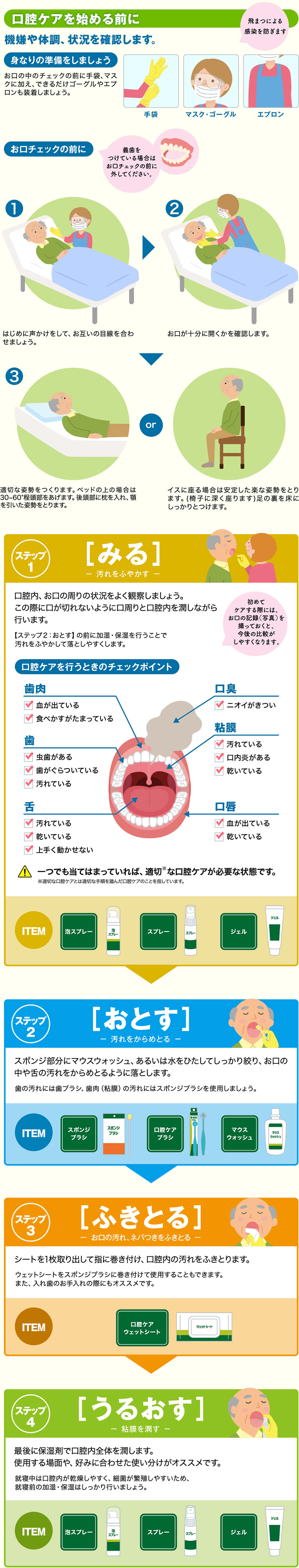 よってステップ1〜4に分けて、日々適切な口腔ケアを実践することが大切です。